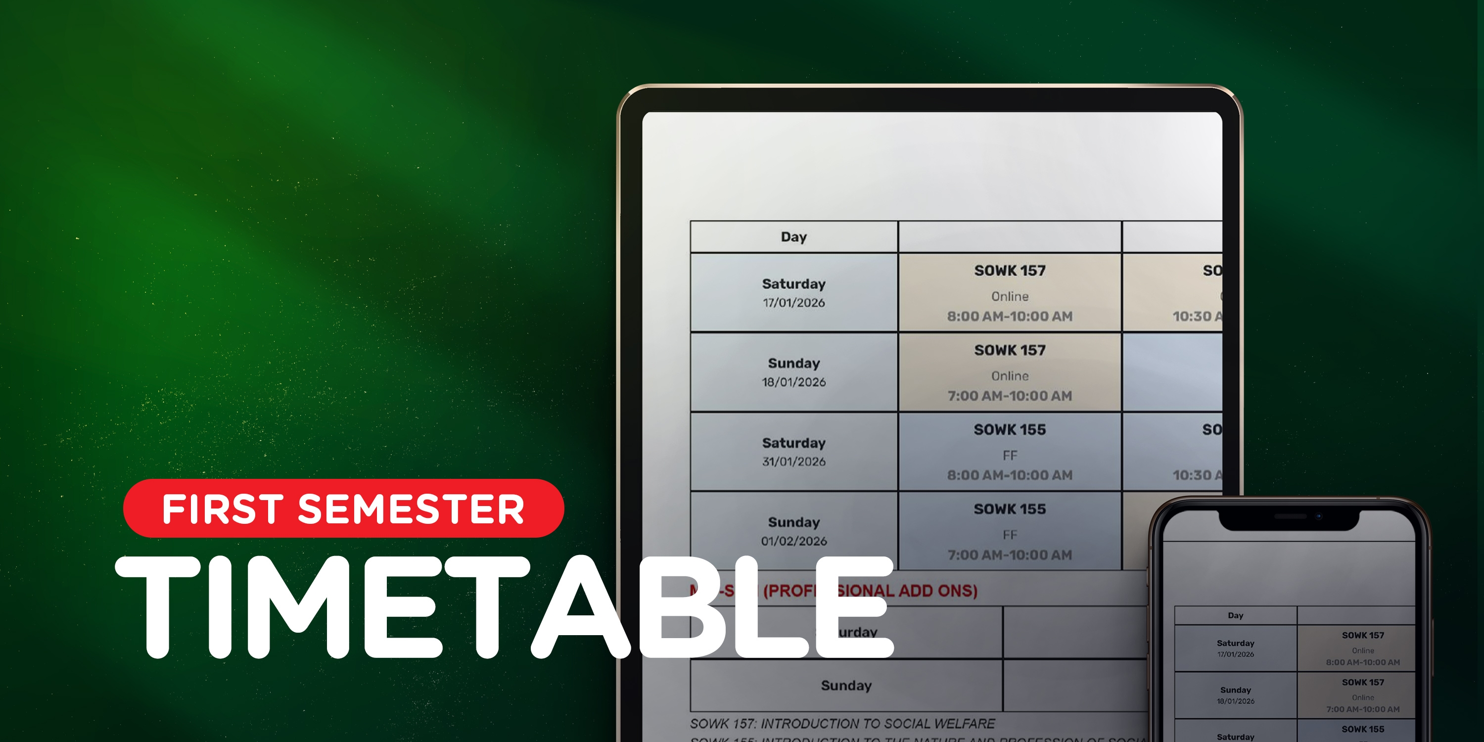 Registration is done at the beginning of each semester. To register,